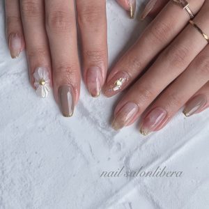 持ち込みデザインです→ニュアンスとミラーですっかり秋ネイルですね!